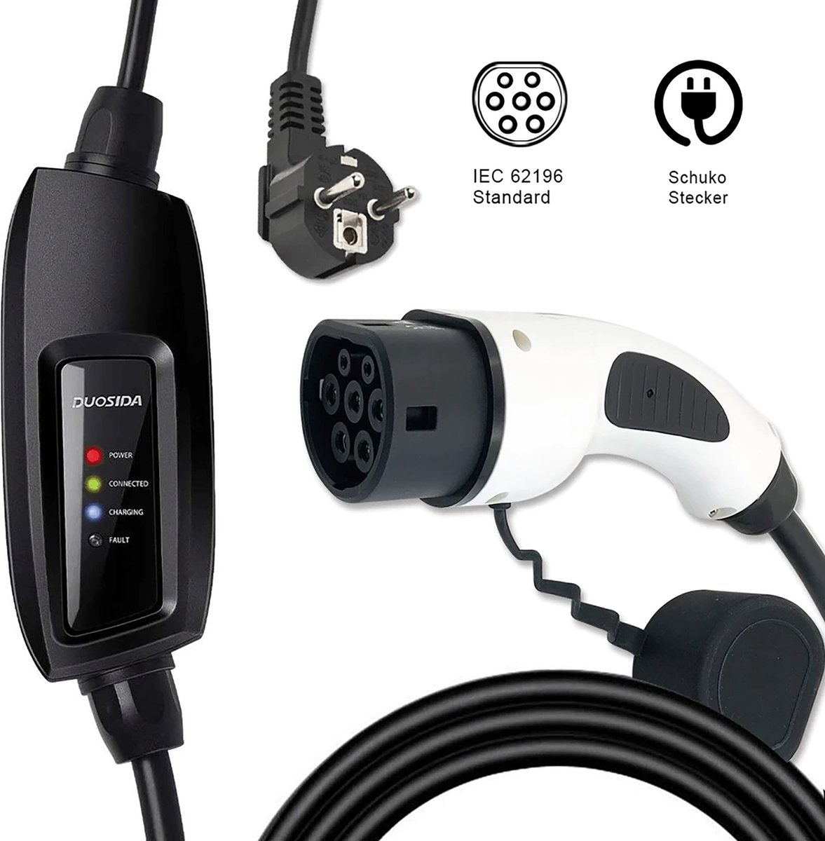 Duosida Mobiele Lader Type 2 naar Randaarde (Schuko) 5 meter