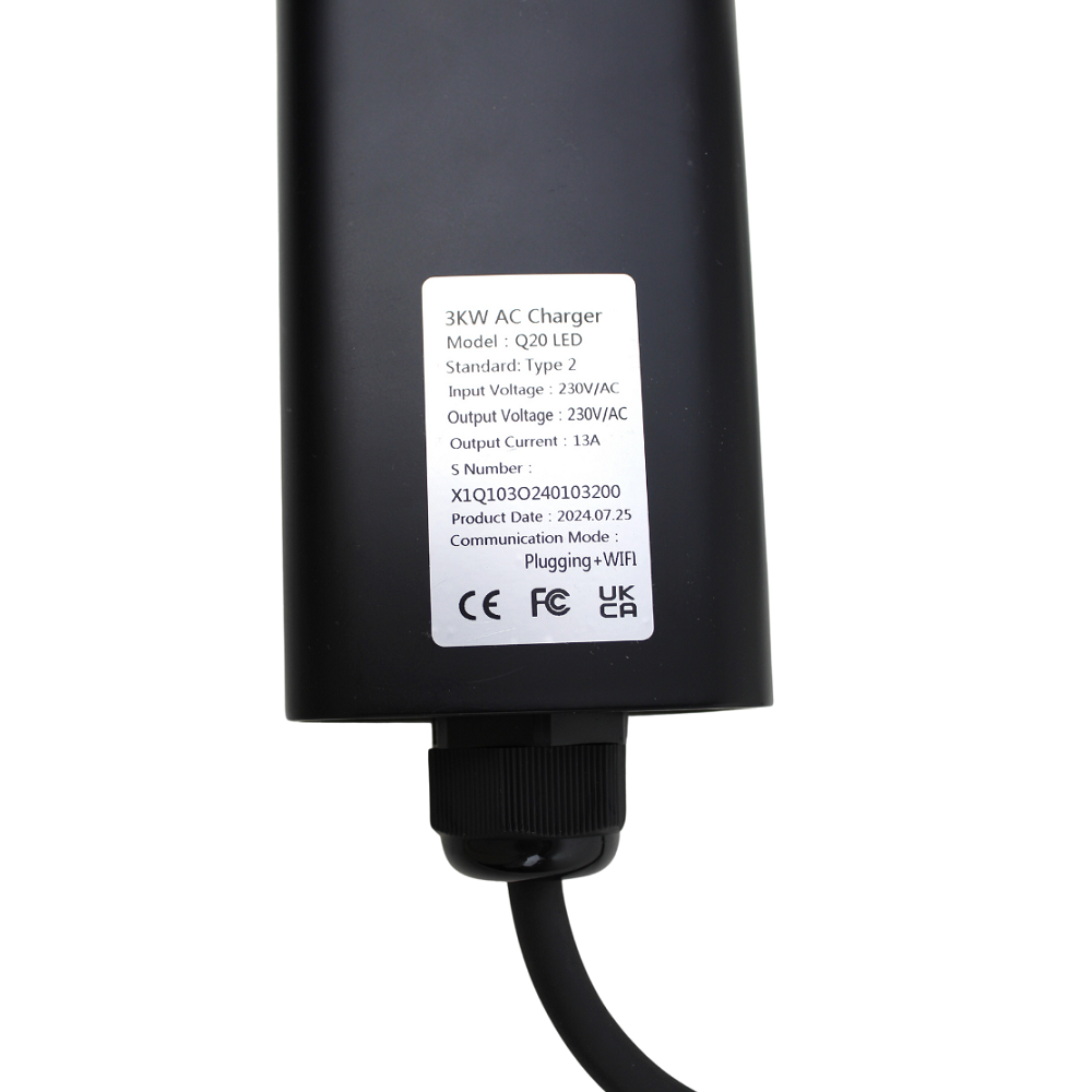 - Instelbaar laadvermogen – Pas het vermogen aan van 1 tot 3kW (6-13A) via de app of knoppen op de lader