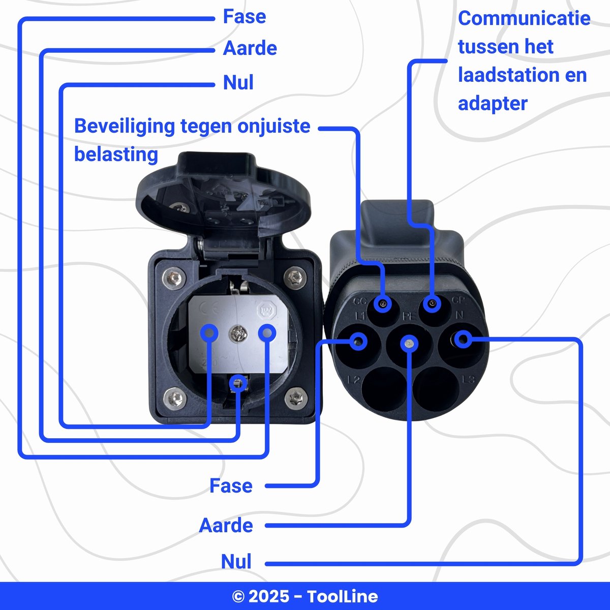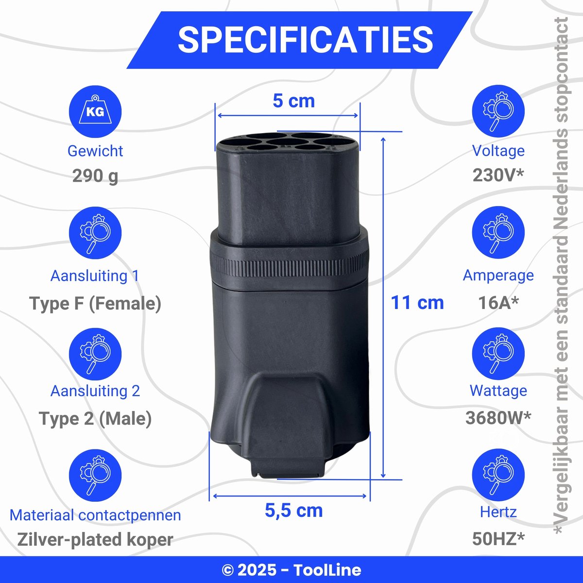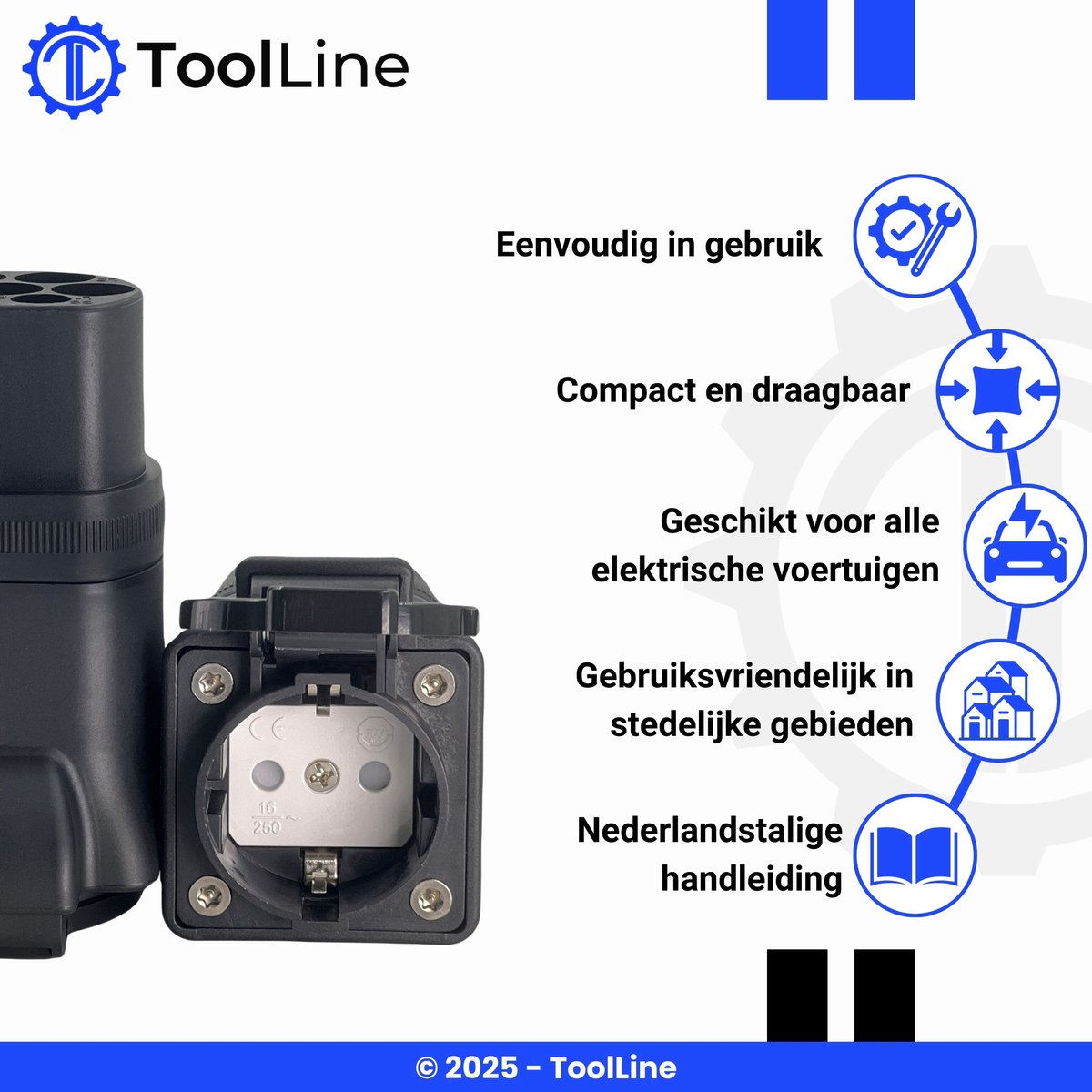 ToolLine Type 2 naar Schuko adapter - Laad je EV of haal stroom uit een laadpaal met een normaal stopcontact